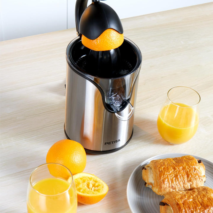 - ANTI-TROPF: Breite Plastikspout zum tropffreien Entsaften.