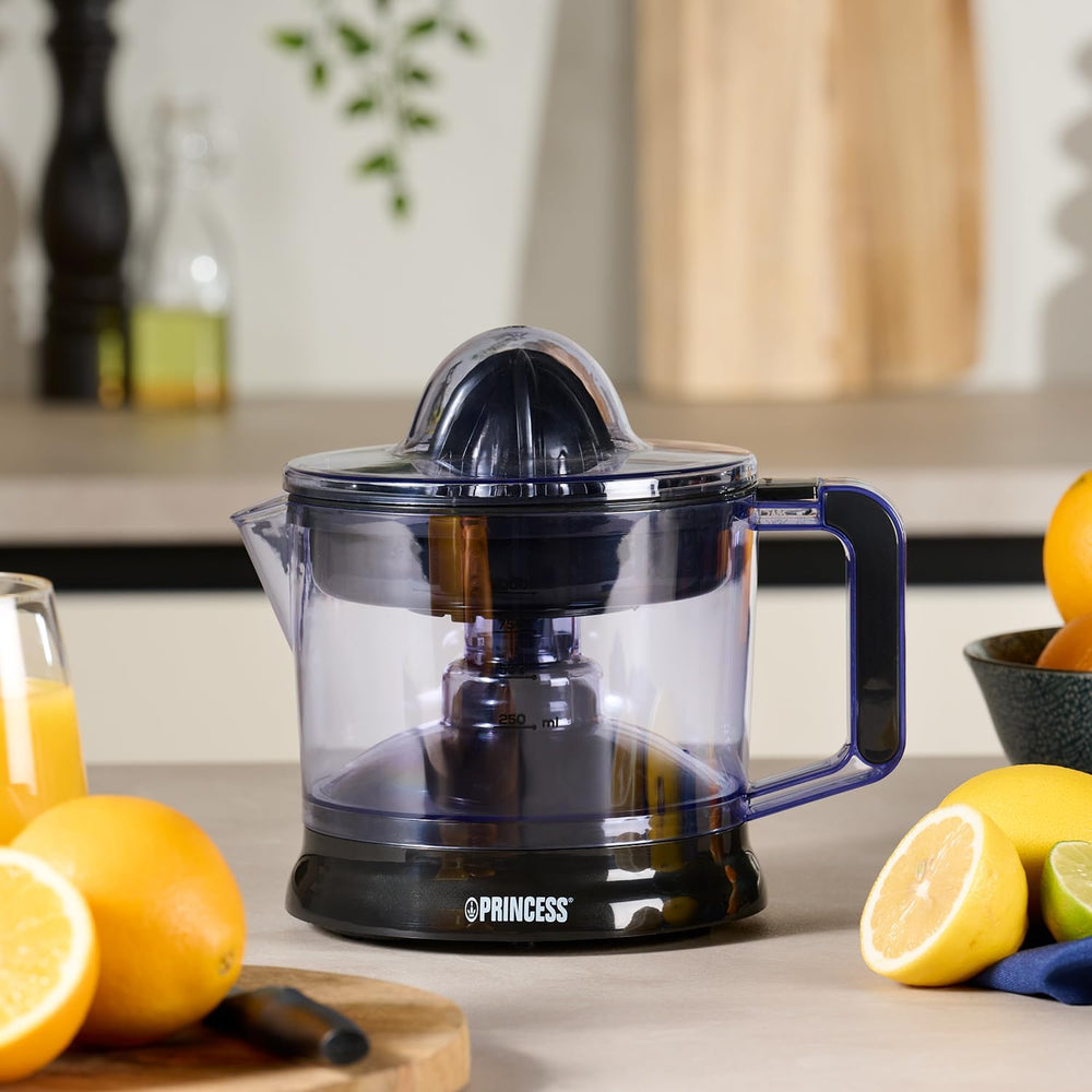 - Der Motor startet automatisch, wenn Sie eine Fruchthälfte herunterdrücken