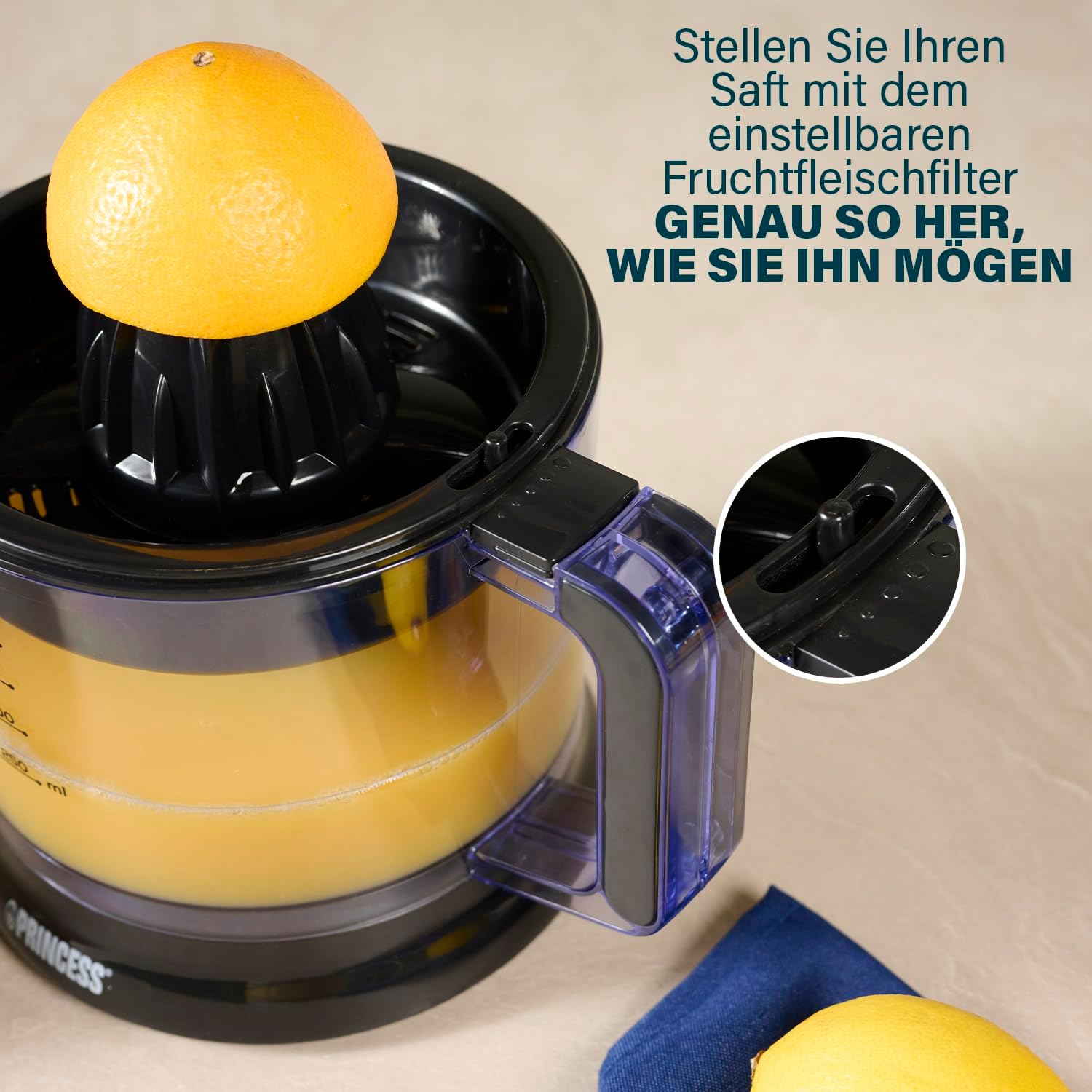 - Innovativer, einstellbarer Fruchtfleischfilter, mit dem Sie den Fruchtfleischanteil im Saft selbst bestimmen können