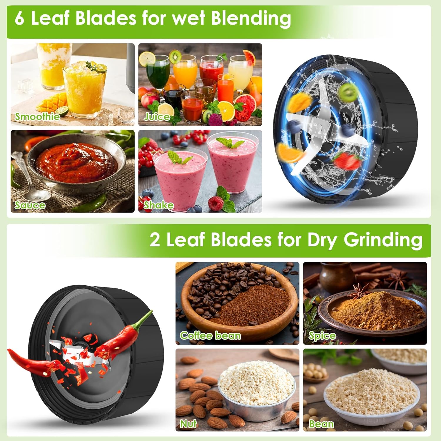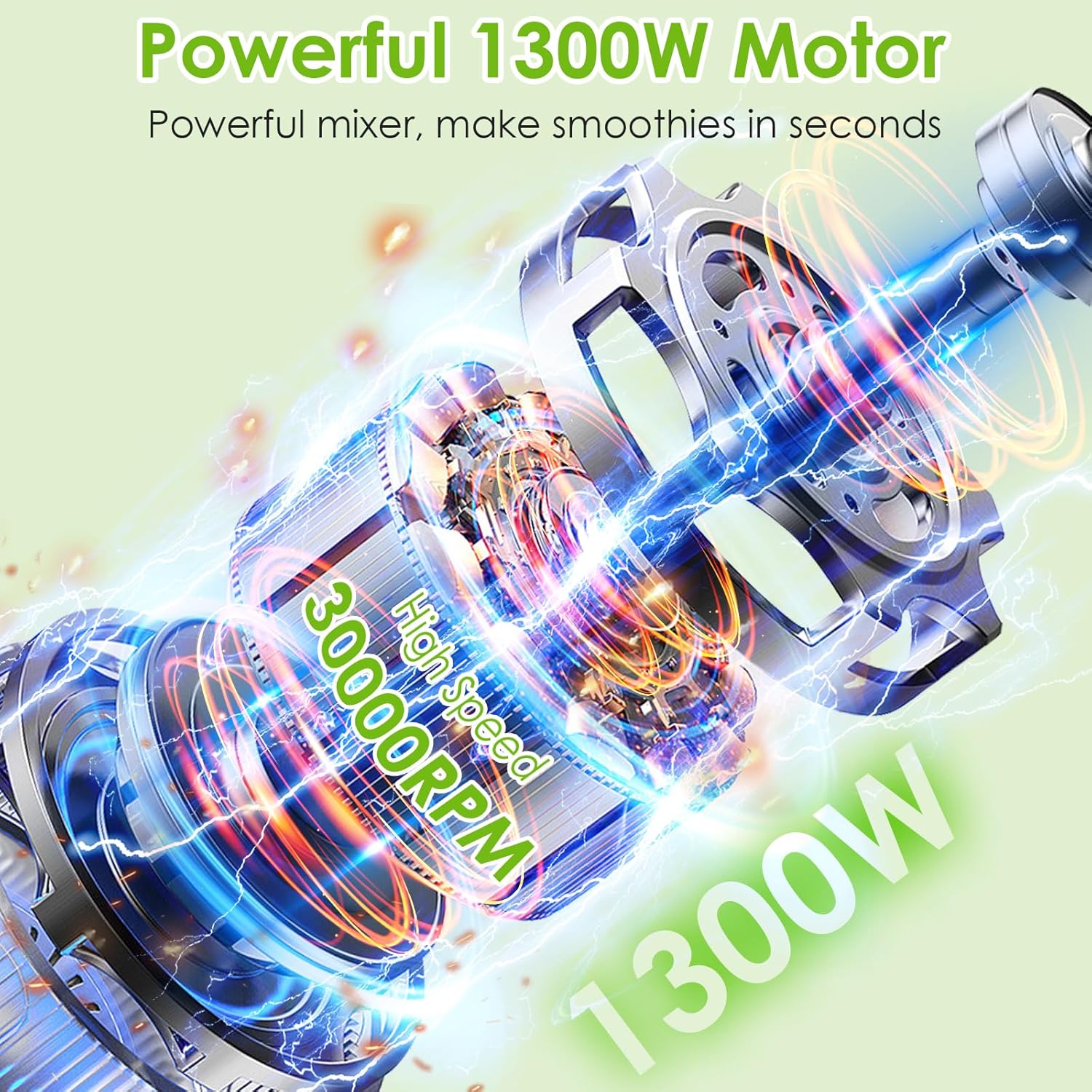 - 🍦Leistungsstarke Mischkraft: Ausgestattet mit sowohl 6-Klingen als auch 2-Klingen Konfigurationen, unser 2in1 Mini Standmixer Tragbar und Mixen zerkleinert und mixt mühelos. Die scharfen Edelstahlklingen und der robuste 1300W Motor drehen sich mit