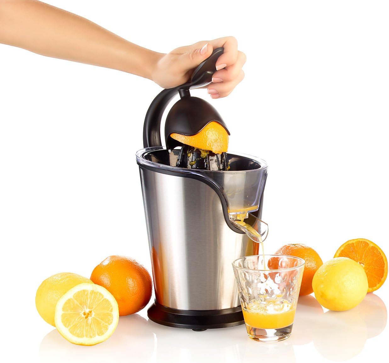 - Ideal für Zitrus-Früchte wie z.B. Zitronen, Orangen und Grapefruits • Tropf-Stopp am Ausguss: alles bleibt sauber • Spannung: 230 Volt (Euro-Stecker)