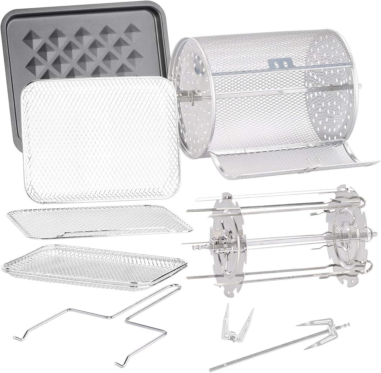 - Sie frittieren, grillen, backen, toasten und dörren mit nur einem Gerät. • Für eine vielfältige Nutzung gerüstet: Mit Drehspiess, Drehkorb, Bratspiessen, Gitterrost und Backblech haben Sie für alle Zubereitungsarten immer das richtige Zubehör