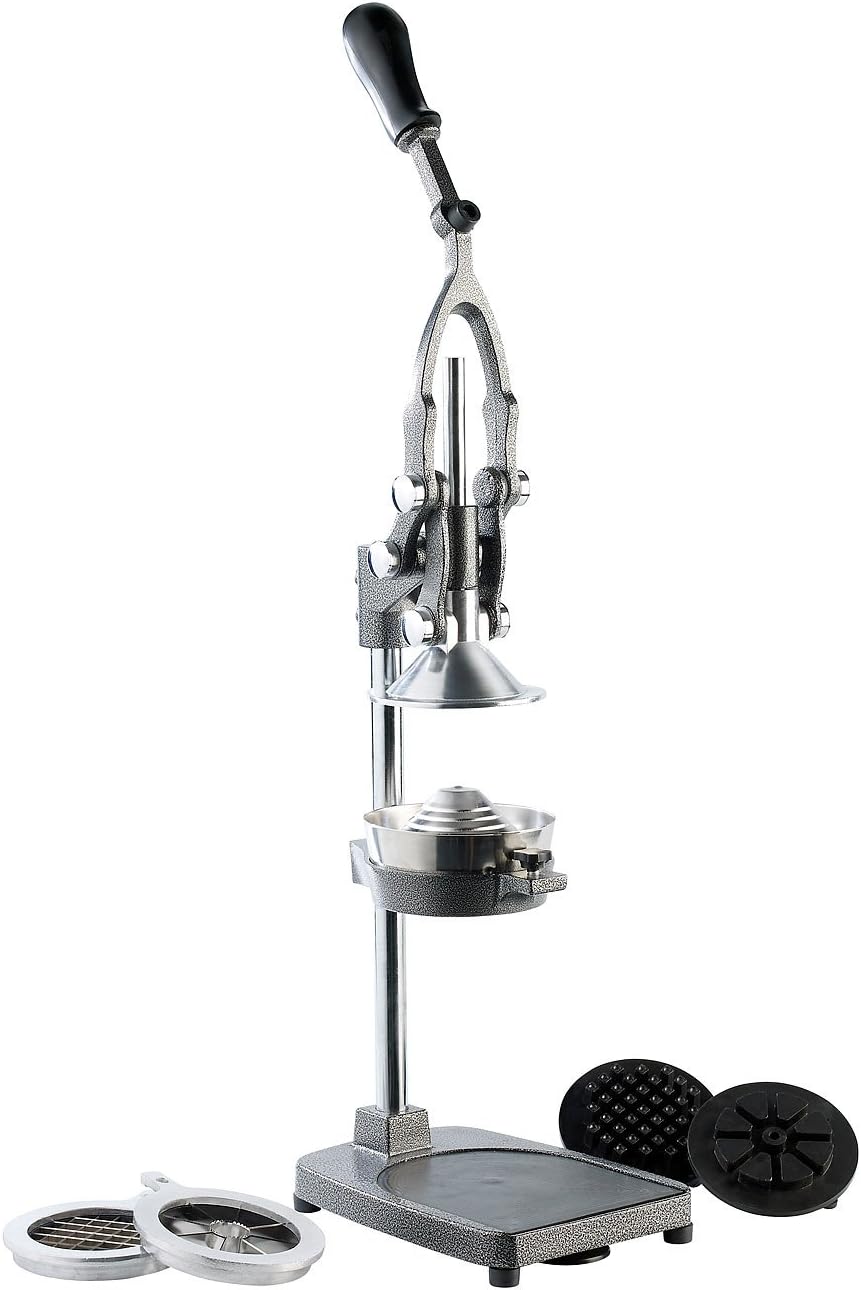 - Schwere 3in1-Multifunktionspresse: für frischen Orangensaft, geachtelte Äpfel & selbstgemachte Pommes • Funktioniert ohne Strom: Mühelos auspressen dank Hebelwirkung • Komplett aus rostfreiem Edelstahl, alle abnehmbaren Teile sind