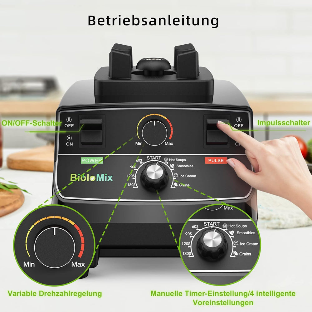 - Abnehmbarer Einfülldeckel für das Hinzufügen von Zutaten während des Mixens