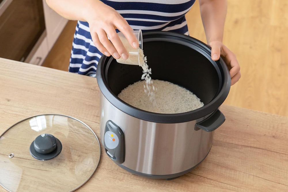 - SENCOR SRM 2800SS, Reiskocher (1000 Watt, Reiskocher mit Dampfgarer-Einsatz, Reislöffel, Messbecher, Volumen 2,8 L, für die Zubereitung von Reis aller Art, einschliesslich Reis für Sushi) edelstahl / schwarz