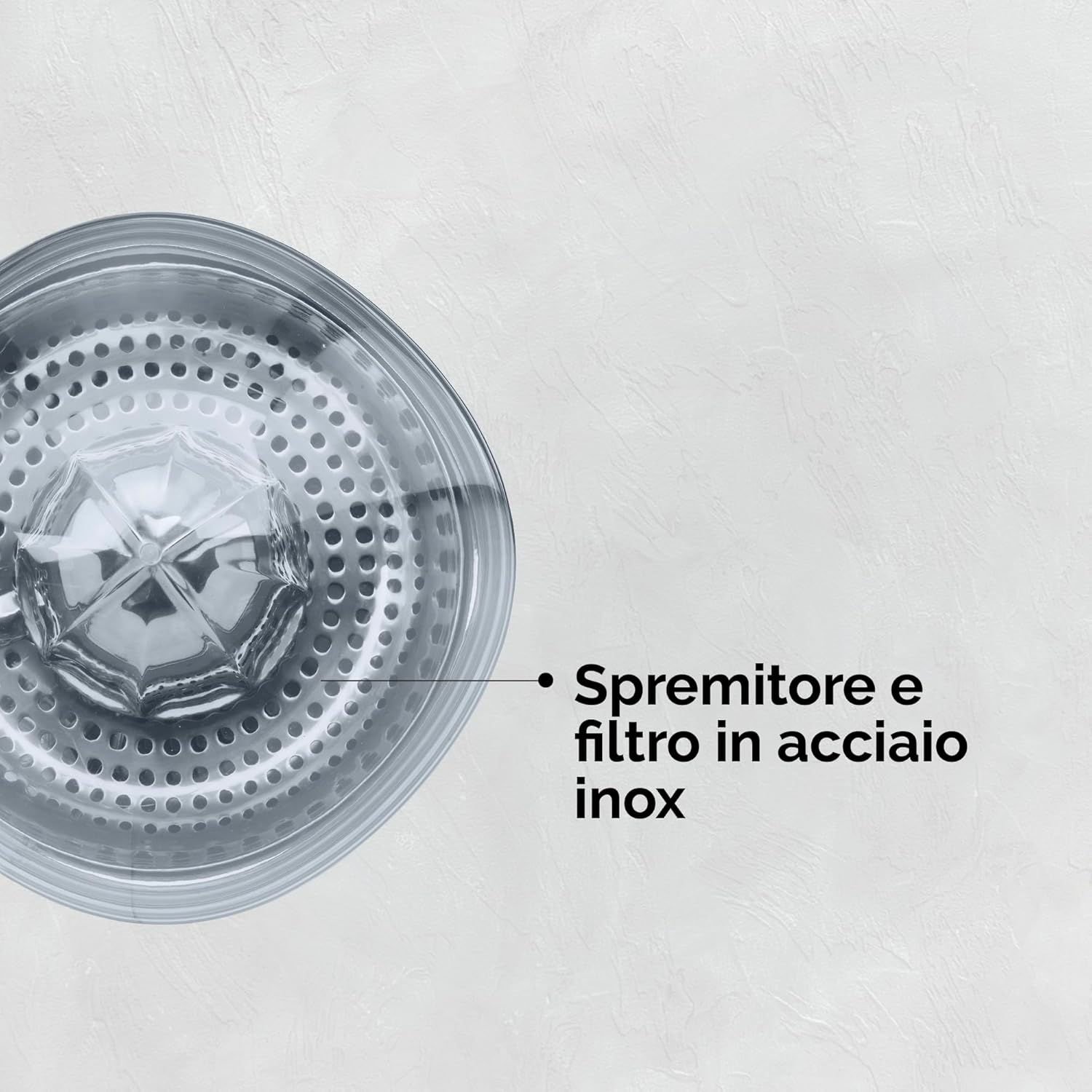 - 70 WATT-MOTOR & AUTMATISCHE START/STOPP-FUNKTION: Leistungsstarker 70 Watt-Motor mit integriertem Sensor: Die Zitruspresse startet, sobald Druck auf den Presskegel ausgeübt wird – für einfache und schnelle Ergebnisse.