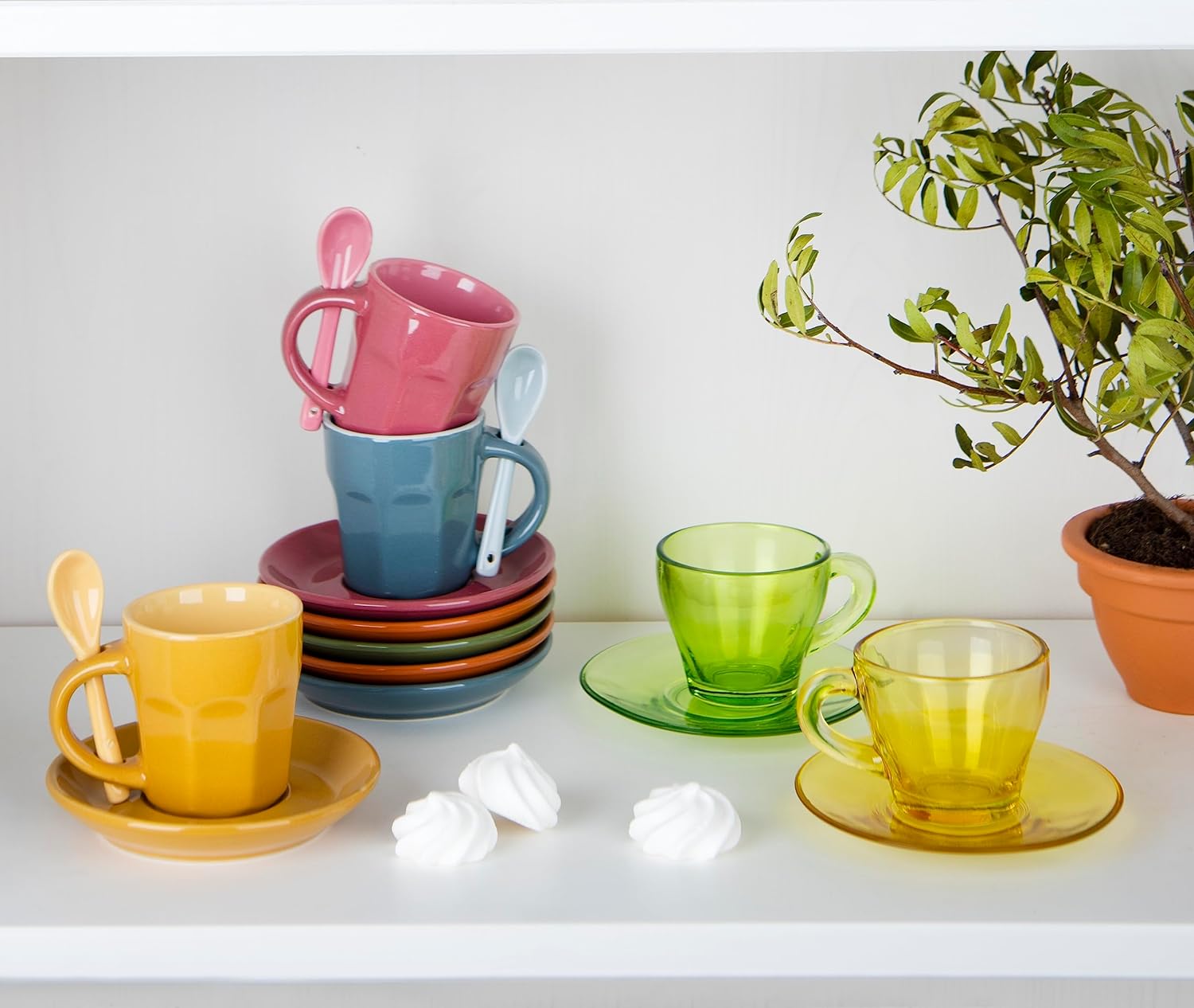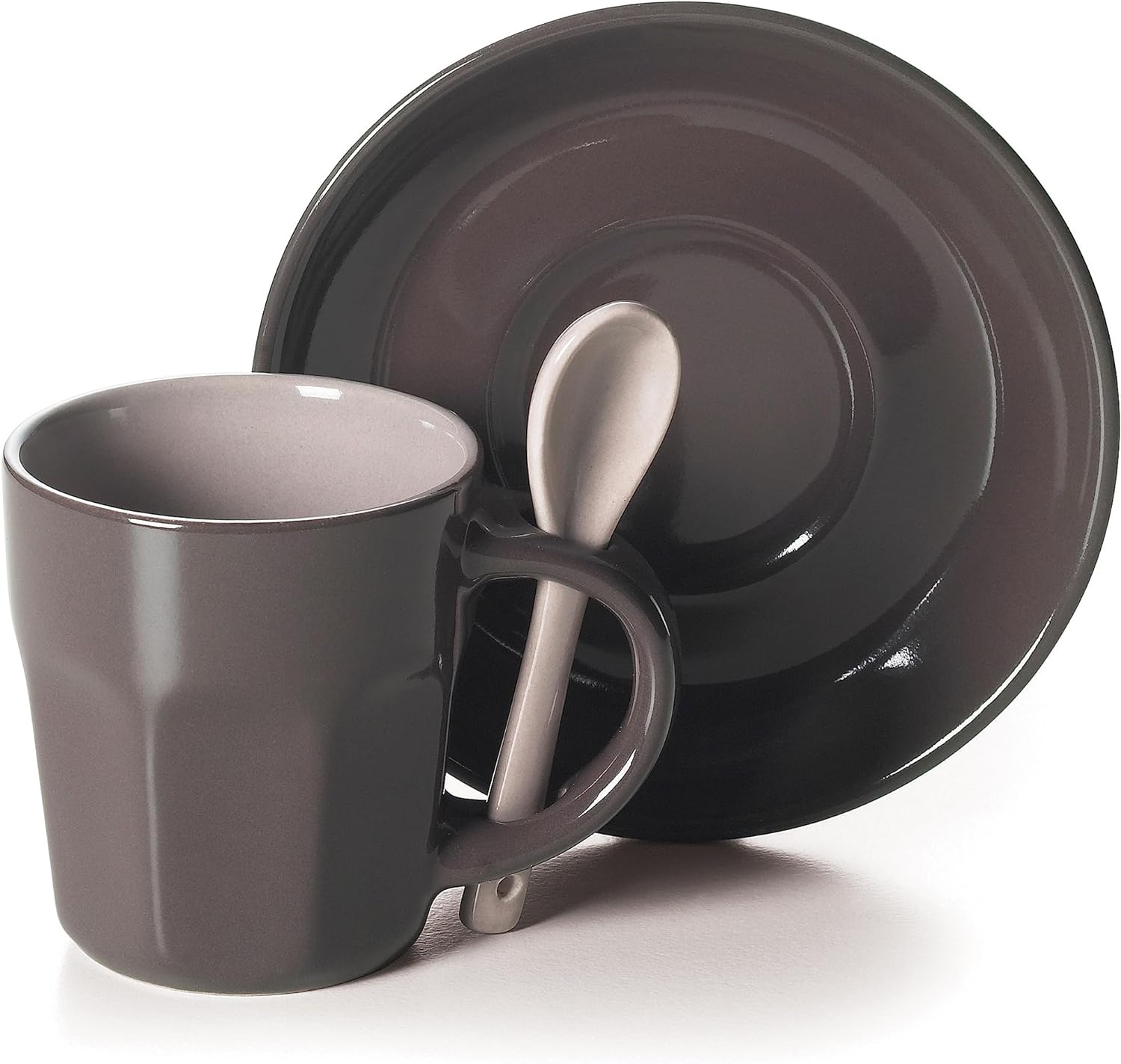 - Durchmesser: 5,5 cm; Höhe: 6,5 cm; Untertasse: 11 cm; Löffel: 9 cm