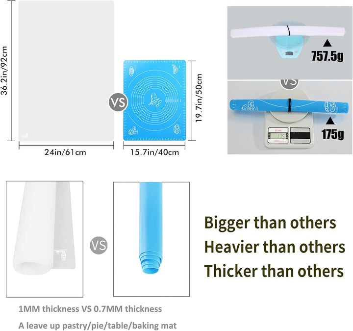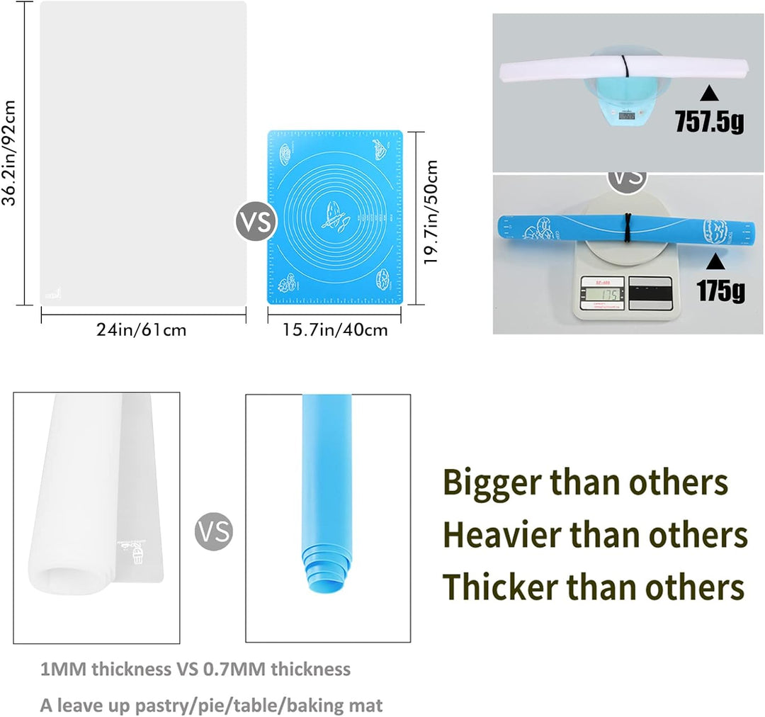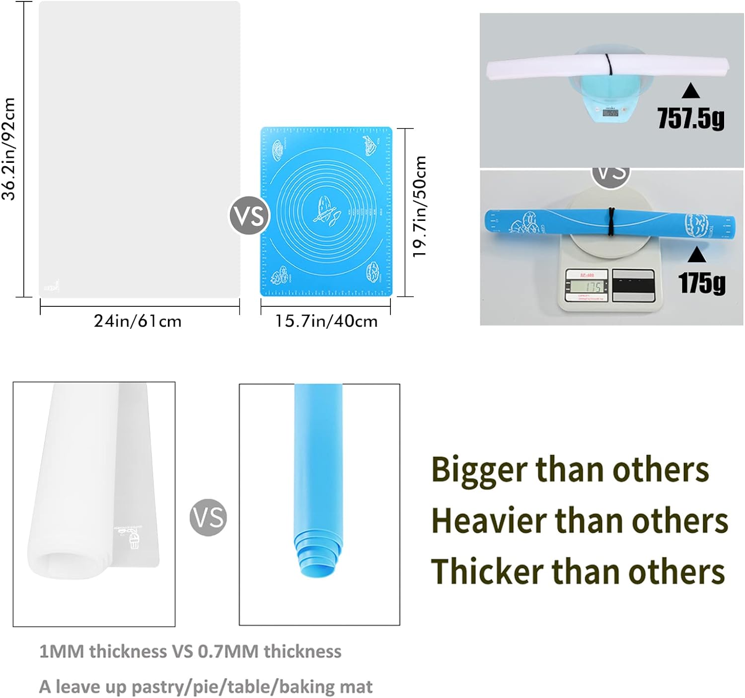 - ★DOPPELTE DICKE & GROSSE SILIKONMATTE:Unsere Matte ist ca. 1 mm Dicke, die doppelt dicker als das 0,7 mm silikonunterlage ist, so dass es sehr schwer zu knittern und sich zu bewegen ist, wenn Sie den Teig ausrollen. Abmessung: 92 x 61 cm, grösser