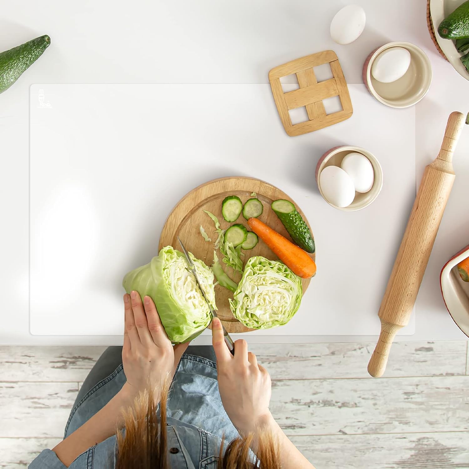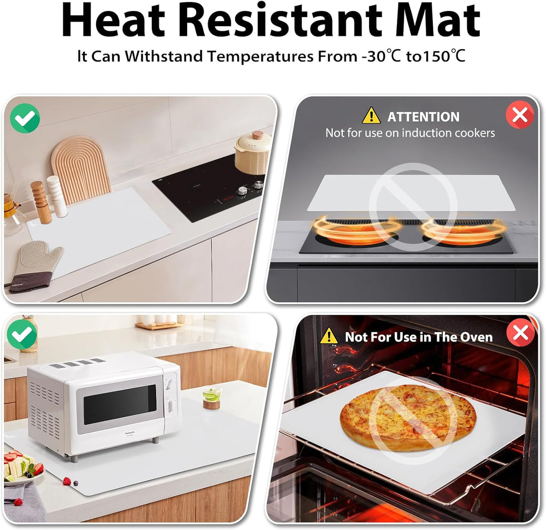 - ★MEHRZWECK: Es kann als Oberflächenschutz, wie Tischmatte, induktionsherd schutzmatte, Fachmatte, Heissluftfritteusen schutzmatte, Thekenmatte verwendet werden. Auch gilt es als Teigunterlage Ausroll matte, Teig kneten unterlage, Teigmatte, Teigbrett,