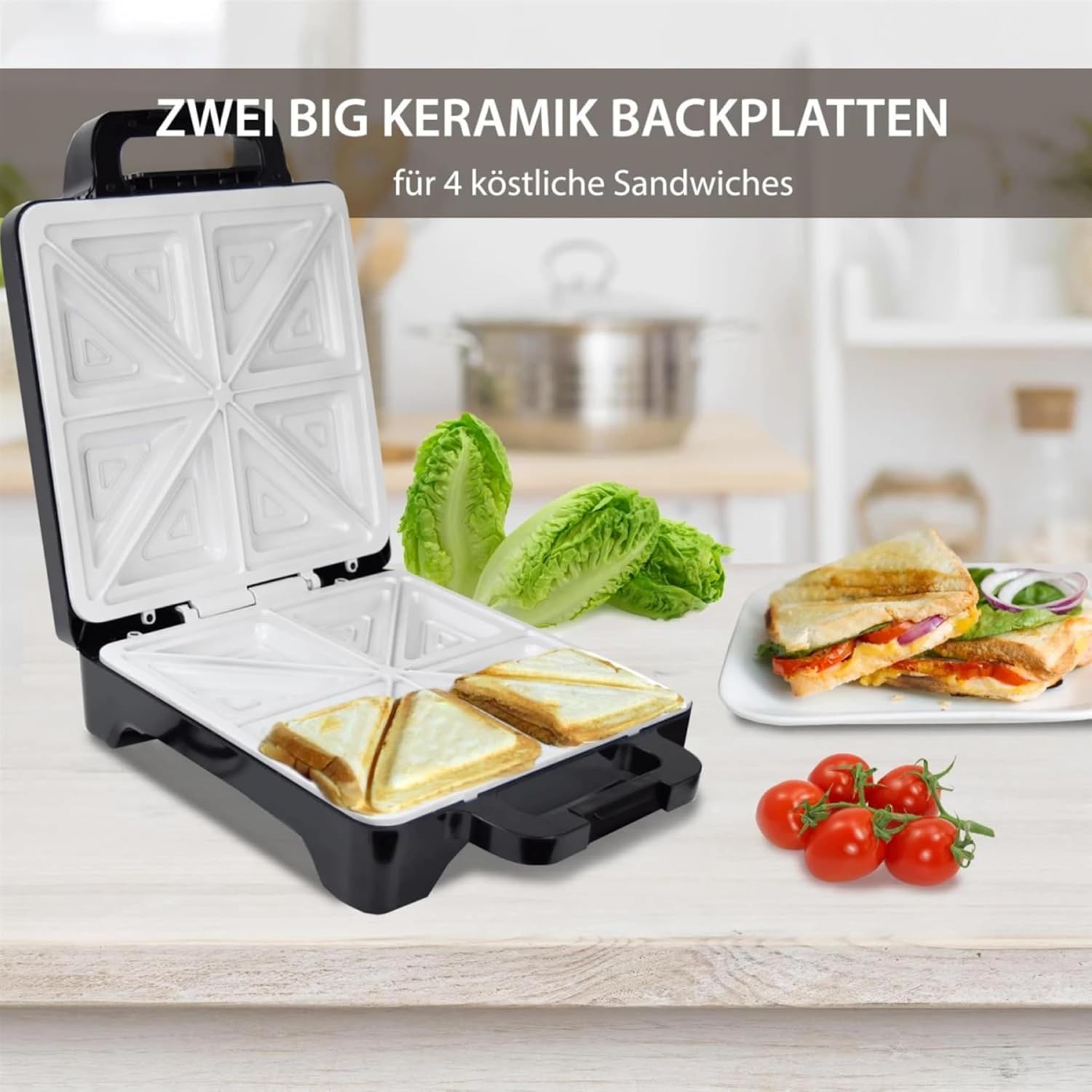 - XXL-Plattengrösse 28,7 × 28 cm – Platz für mehrere Sandwiches gleichzeitig.