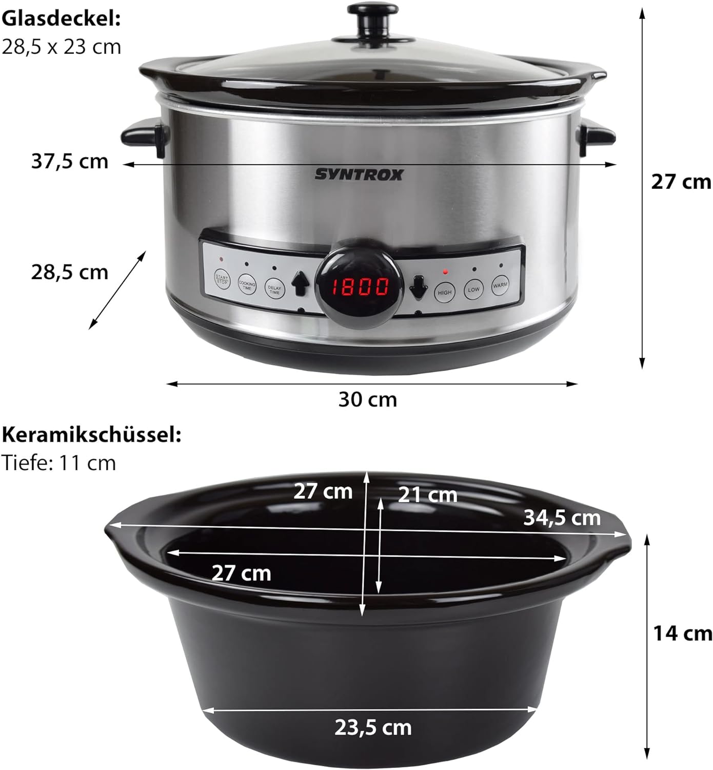 - 🥣 Digitaler Edelstahl Schongarer - perfekt für die nährstoff-erhaltende schonende Zubereitung von Schmorbraten, Curry, Gulasch, Geschnetzeltem, Eintöpfen, Suppen u. v. m.
