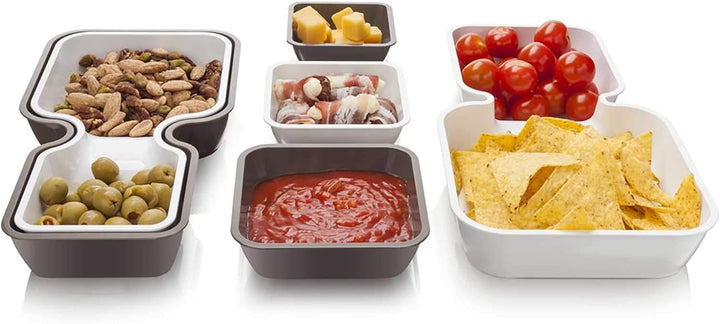 - Set beinhaltet drei Doppelschalen und drei einzelne Tabletts