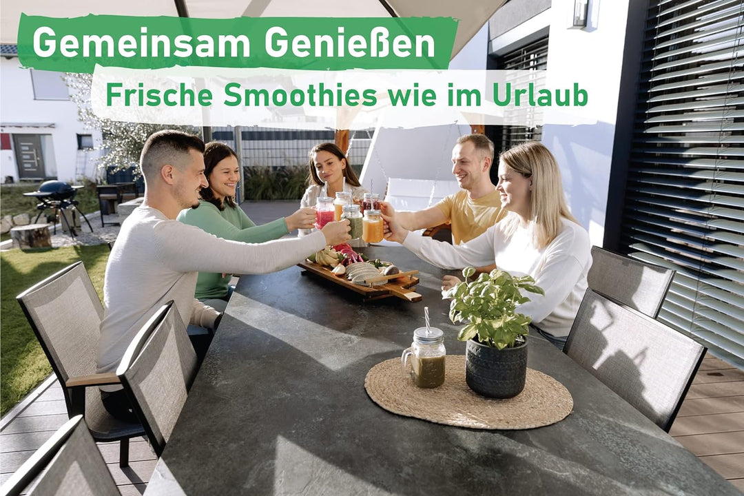 - 𝐍𝐄𝐔 – Ganz neu in unserem Sortiment, dass grosse 3in1-Set mit 4 Mason-Jar-Cups aus Glas. Zum Geniessen mit der ganzen Familie oder Freunden. Teile deinen frischen und gesunden Moment mit deinen Liebsten.