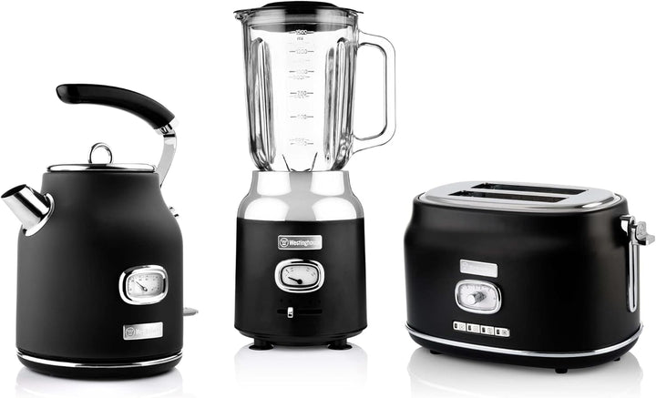 - RETRO LOOK: Schon die Optik des Frühstück-Sets ist ein echter Pluspunkt. Der formschöne Wasserkocher, Toaster und Standmixer im Retro-Style erfüllen nicht nur ihre Funktion, sondern sind auch echte Hingucker in der Küche.