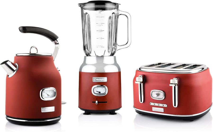 - RETRO LOOK: Schon die Optik des Frühstück-Sets ist ein echter Pluspunkt. Der formschöne Wasserkocher, Toaster und Standmixer im Retro-Style erfüllen nicht nur ihre Funktion, sondern sind auch echte Hingucker in der Küche.