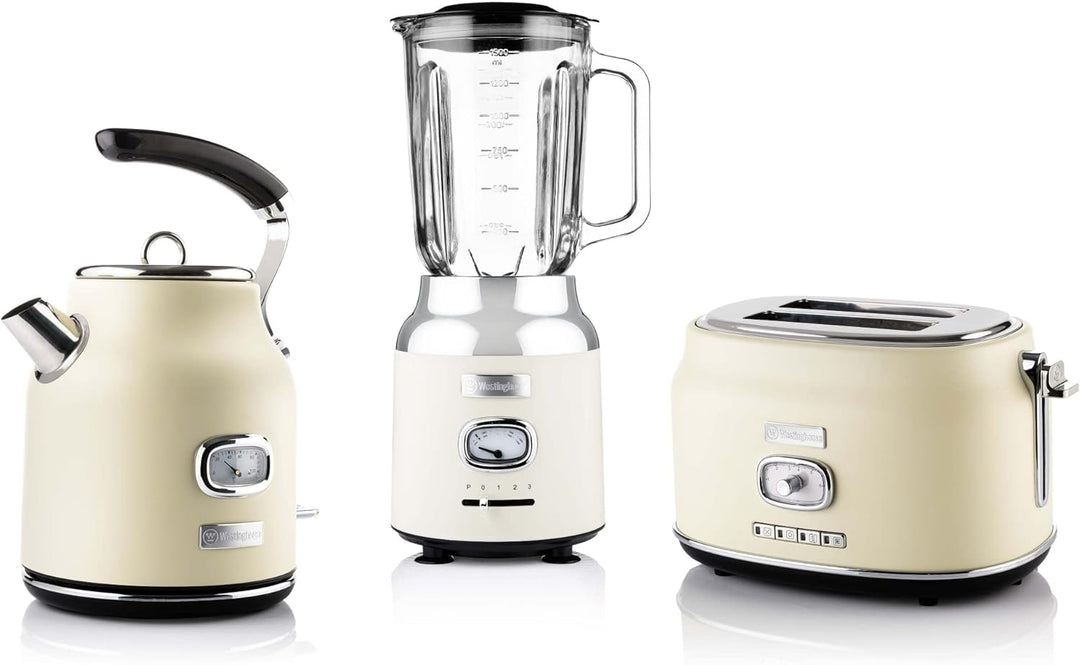 - RETRO LOOK: Schon die Optik des Frühstück-Sets ist ein echter Pluspunkt. Der formschöne Wasserkocher, Toaster und Standmixer im Retro-Style erfüllen nicht nur ihre Funktion, sondern sind auch echte Hingucker in der Küche.