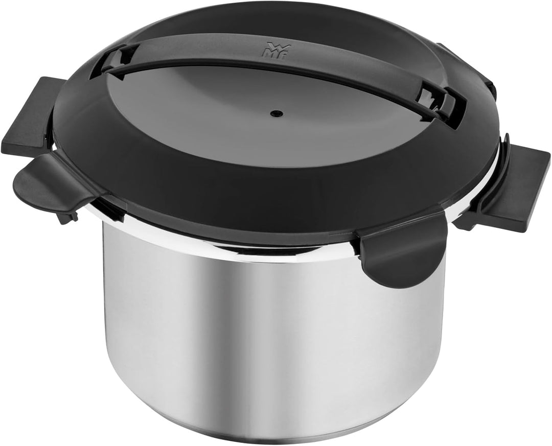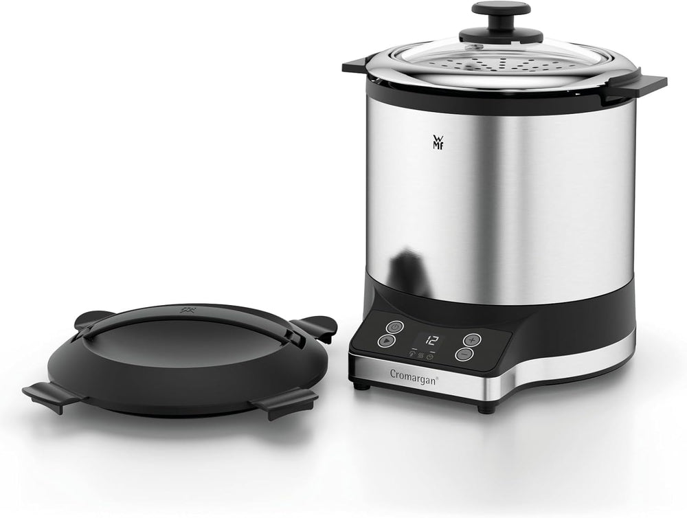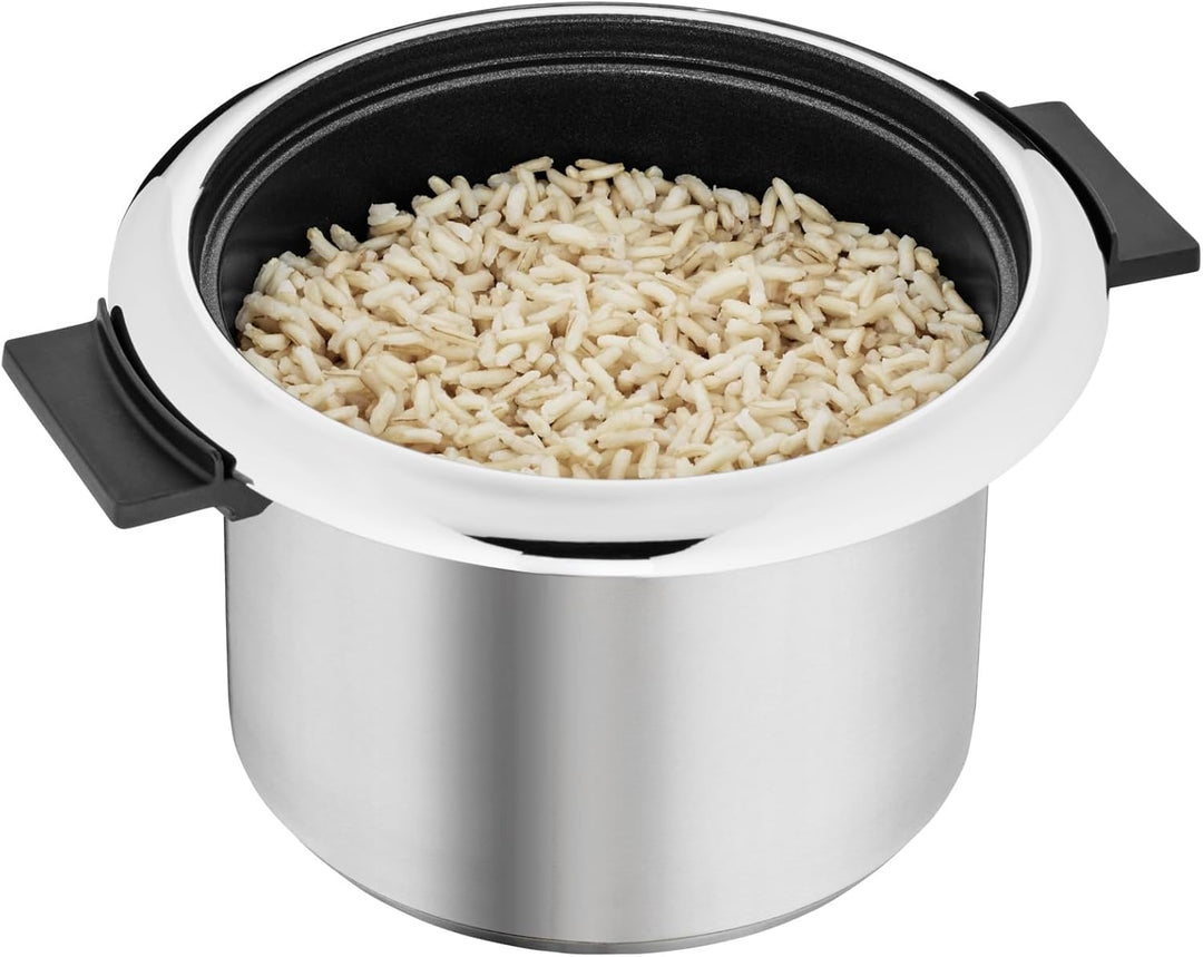 - Innentopf aus Cromargan, kein Anbrennen durch Doppel-Antihaftbeschichtung, Doppelschichtboden für eine schnelle, gleichmässige Wärmeverteilung