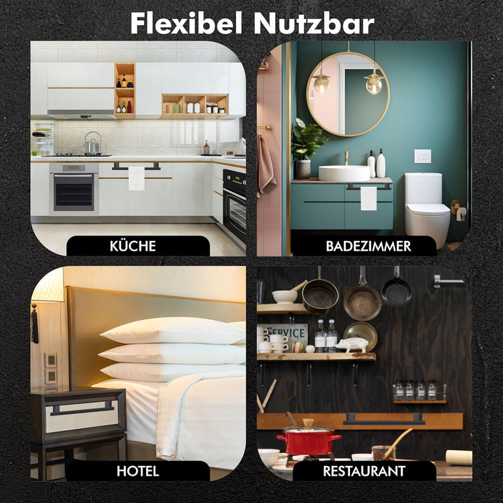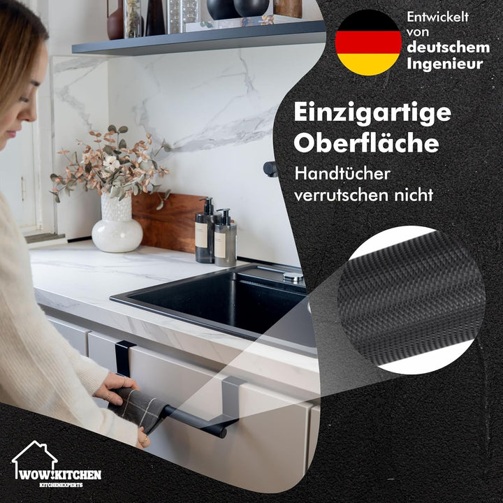 - Einzigartige Oberfläche: Unser Handtuchhalter ohne Bohren zeichnet sich durch seine einzigartige gerändelte Oberfläche aus, die das Verrutschen von Handtüchern oder Geschirrtüchern verhindert. Ideal für jeden Haushalt.