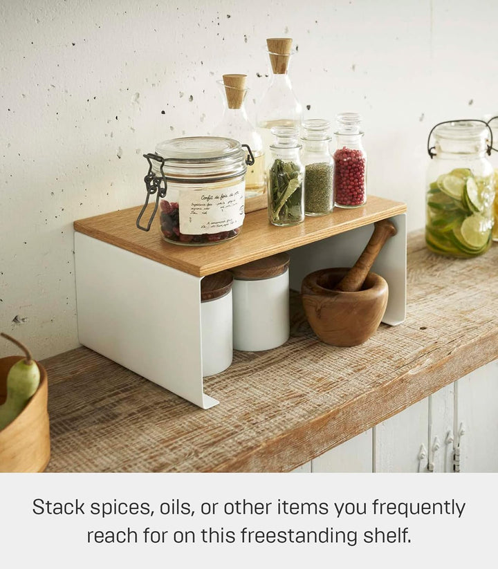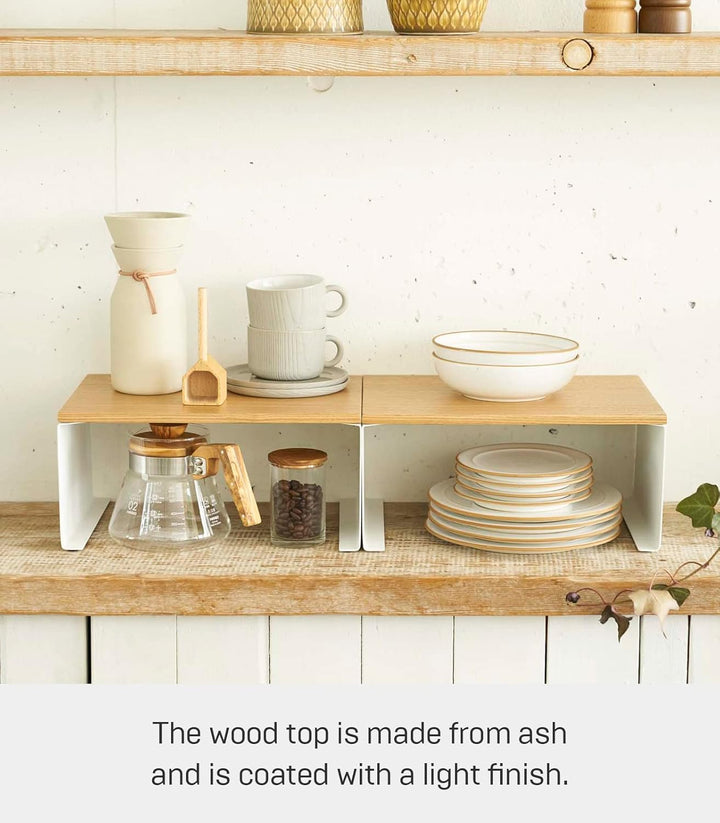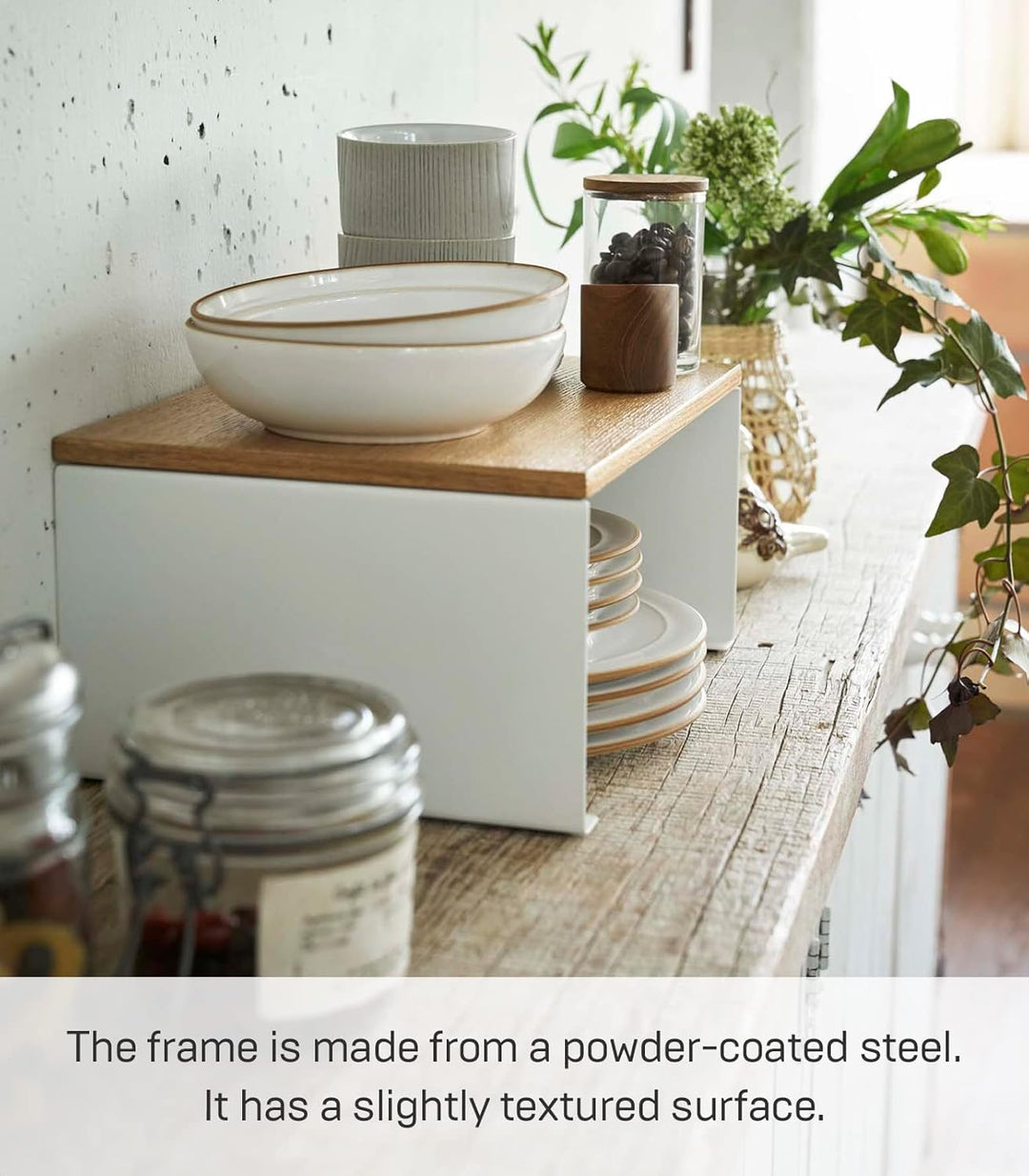 - Verwenden Sie dieses stapelbare Küchenregal , um mehr Platz für Gläser, Gewürze oder andere Küchenutensilien zu schaffen.