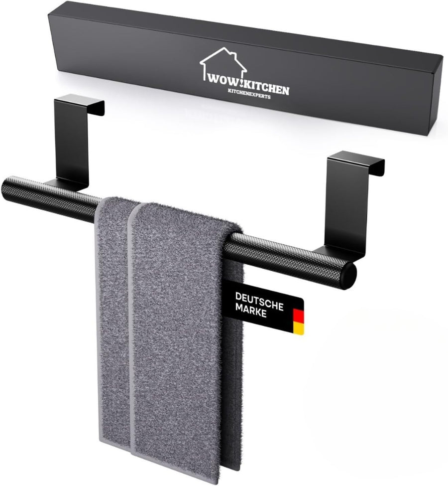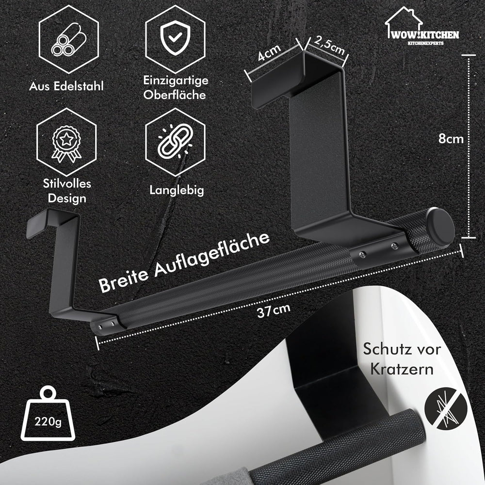 Wow!Kitchen® Handtuchhalter ohne Bohren, Handtuchhalter Schwarz, Stilvoller Edelstahl Handtuchhalter