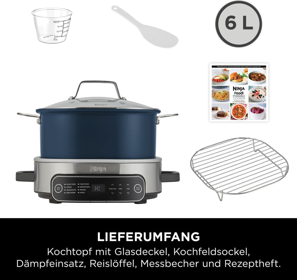 Ninja Foodi PossibleCooker, 6 L Slow Cooker und Reiskocher, vielseitige 8-in-1-Funktionen, nachtblau