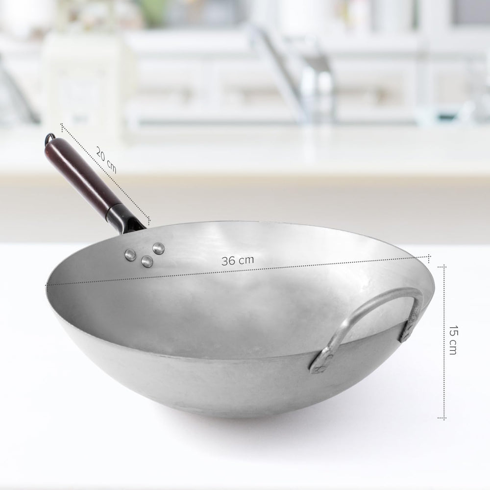 joeji's Kitchen Handgehämmerter Wok aus Kohlenstoffstahl mit abnehmbarem Griff – rostbeständiger Wok