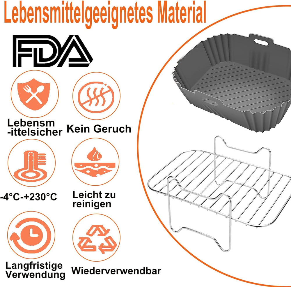 Dual Zone Heissluftfritteusen Zubehör, Airfryer Zubehörset Mit Silikonform Pot Kompatibel für Ninja