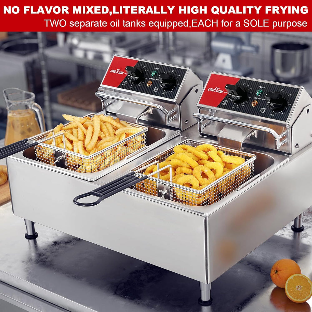 CROSSON 12L Elektrische Fritteuse mit doppeltem Tank und rotierendem Fritteusenkopf, 30-Minuten-Time
