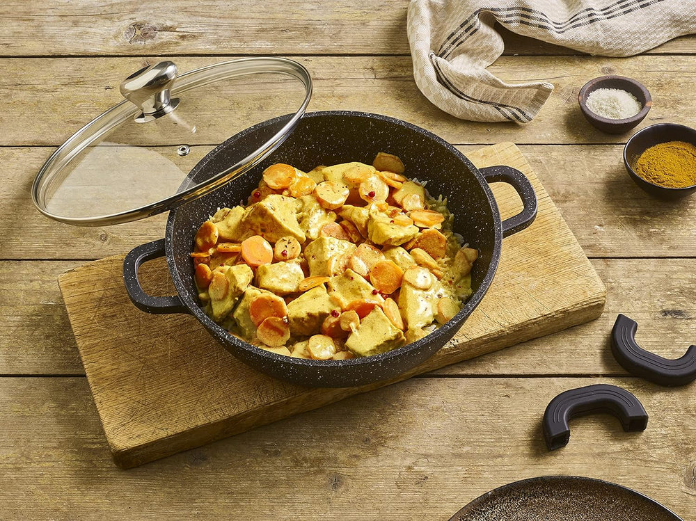 Pradel Excellence 52404M Schongarer mit Deckel, Stein-Optik, Aluminiumguss, Schwarz, 28 x 16 cm