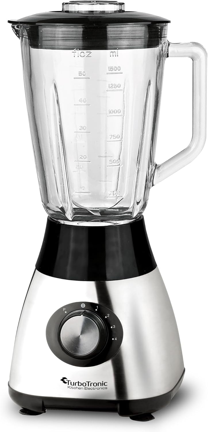 TurboTronic Standmixer mit 1,5L Glasbehälter 1200W Edelstahl silber, Smoothie Maker, Ice Crush Funkt