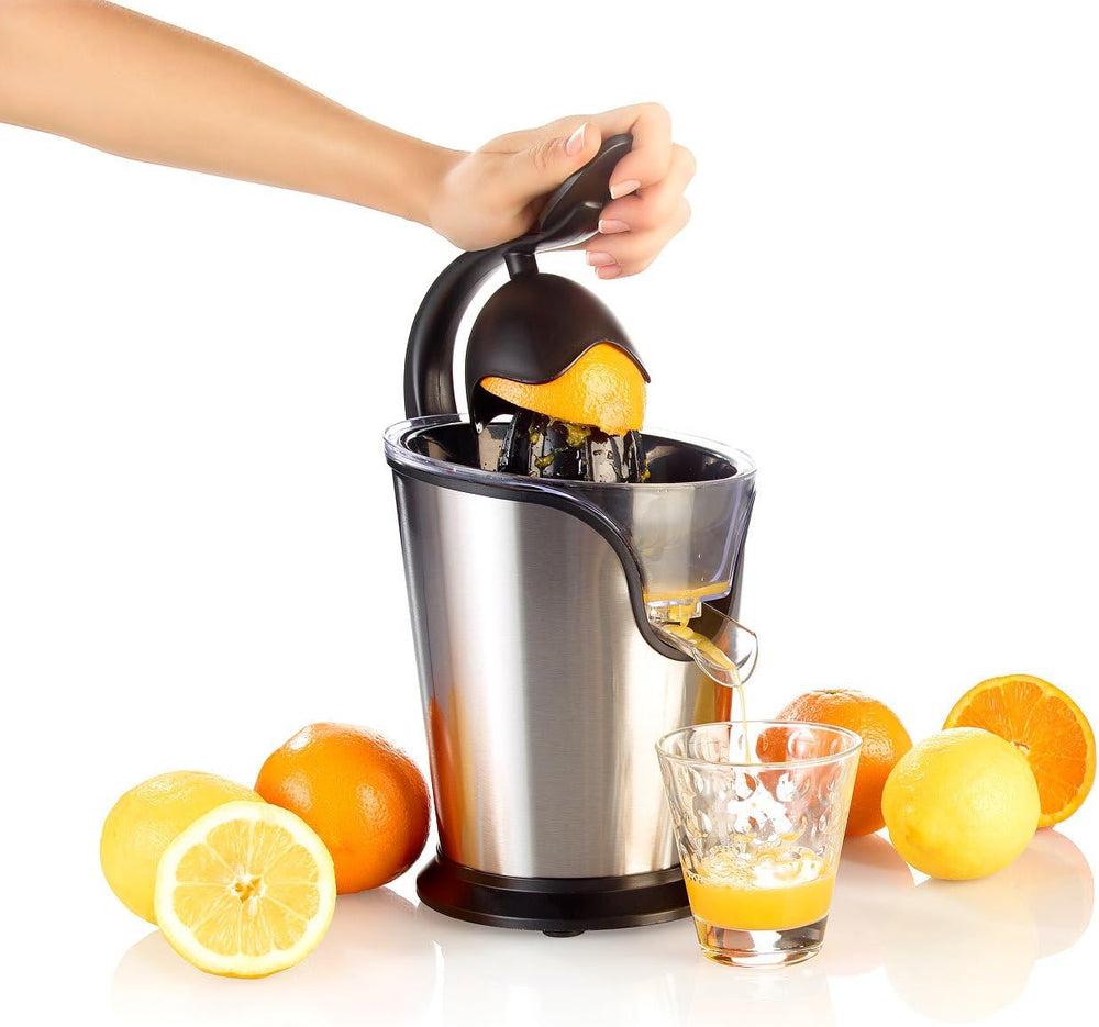 Rosenstein & Söhne Elektrische Saftpresse: Elektrische Zitruspresse aus Edelstahl, 100 Watt (Elektri