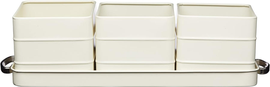 KitchenCraft Living Nostalgie Indoor Metallkräutertöpfe und Tablettset, Vintage Inspirierter Mini-Kr