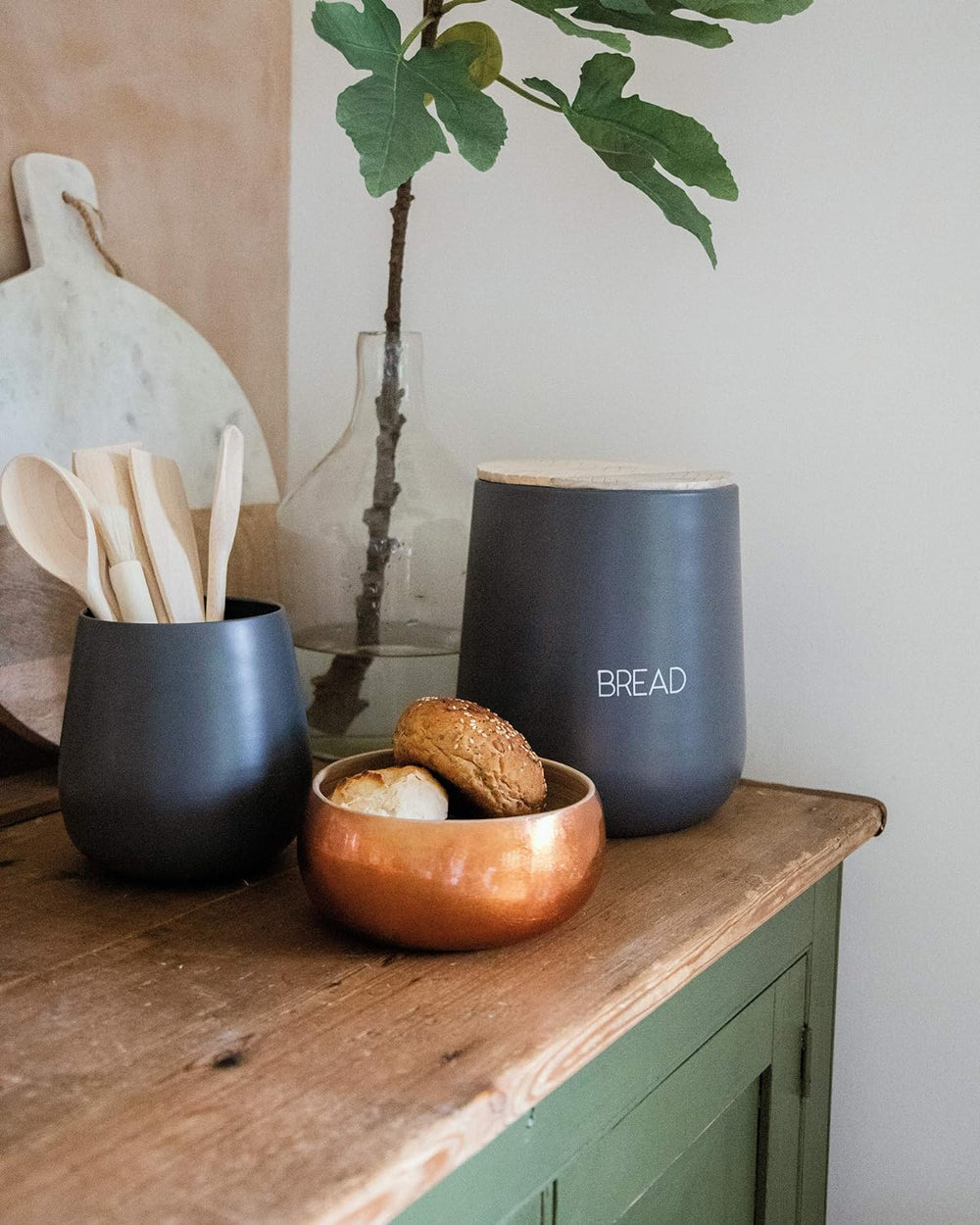 KitchenCraft Serenity Brotkasten mit luftdichtem Deckel, Eisen, grau/braun, 21.5 x 24.5 cm