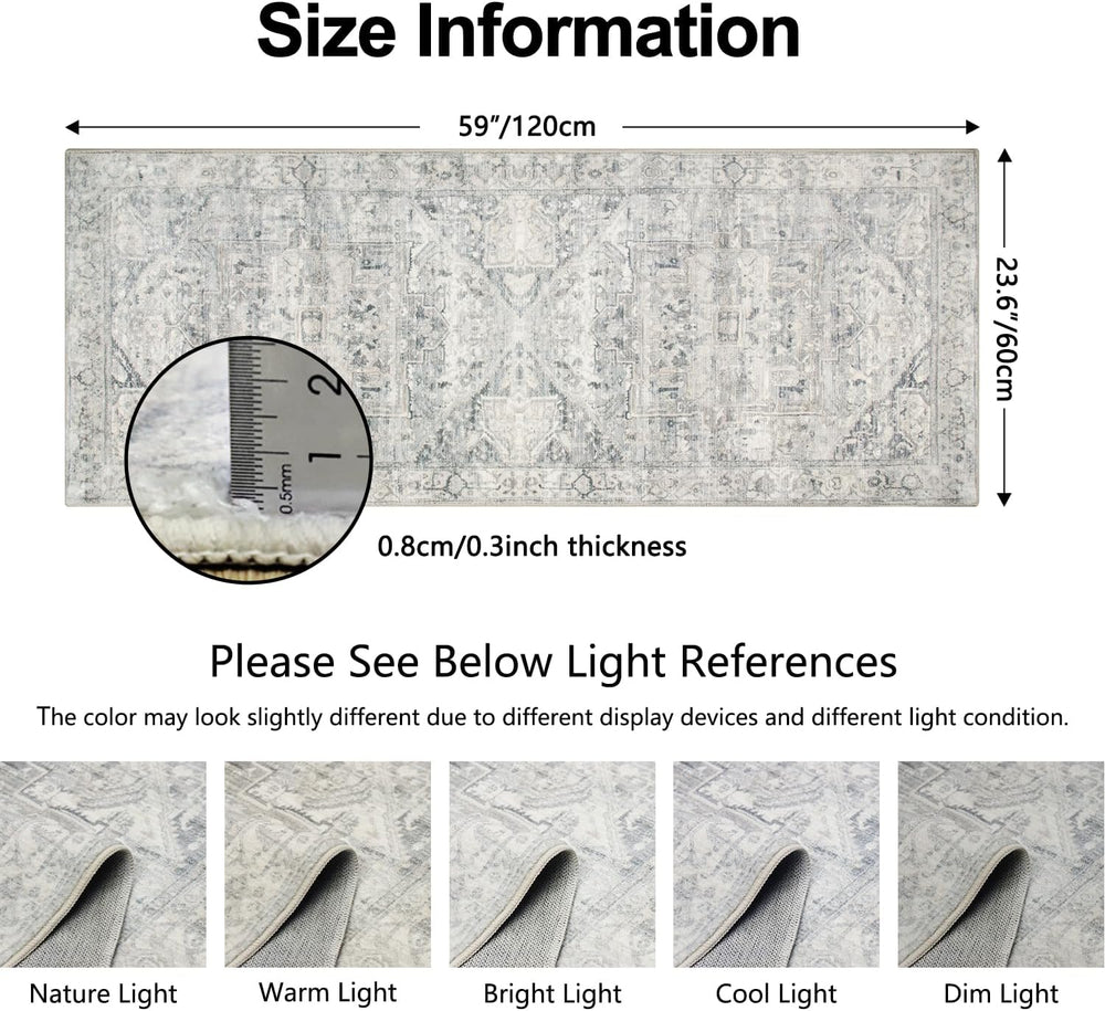 Homcomodar Vintage Flur Runner Teppiche 60x150cm Waschbare Distressed Kitchen Runner Teppiche mit Gu
