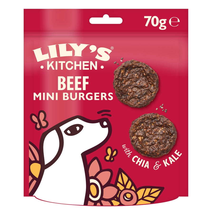 Lily’s Kitchen Leckerchen für ausgewachsene Hunde 8er Pack (8 x 70 g) Mini Burgers mit 80 % Rind
