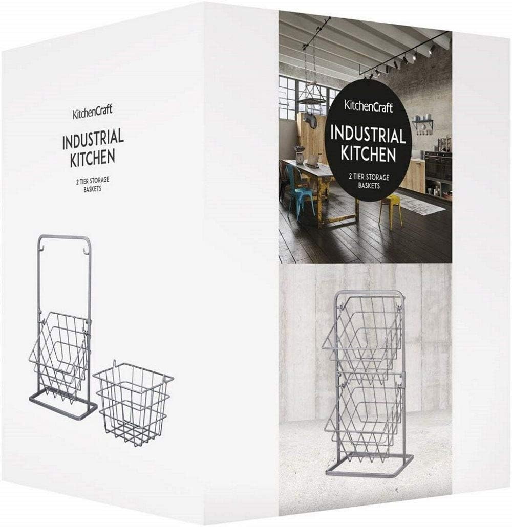 KitchenCraft Industrial Kitchen Regal, Freistehend, 2 Drahtkörbe in freistehendem Regal, Vintage/Use
