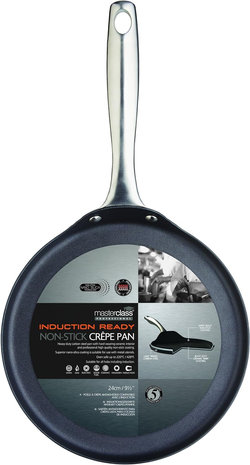 KitchenCraft MasterClass Carbon stahl Antihaft-Induktionspfanne für Crêpes und Pfannkuchen, 24 cm Ei