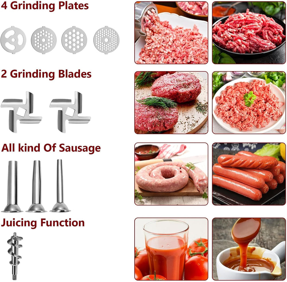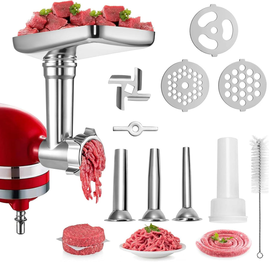 Fleischwolf Aufsatz für KitchenAid Küchenmaschinen mit 3 Wurstfüllrohren, 4 Mahlscheiben, 2 Messern,