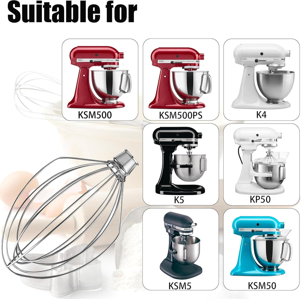 Schneebesen kompatibel mit KitchenAid K45WW KSM90 K45 KSM150 Schneebesen für Eier und Kuchen Rührmas