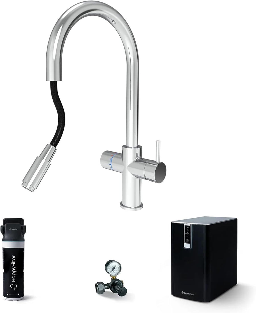 HappyFilter FizzRed Wassersprudler Wasserkocher | gekühlt | gesprudelt | kochend| 5in1 Flex Chrom Wa