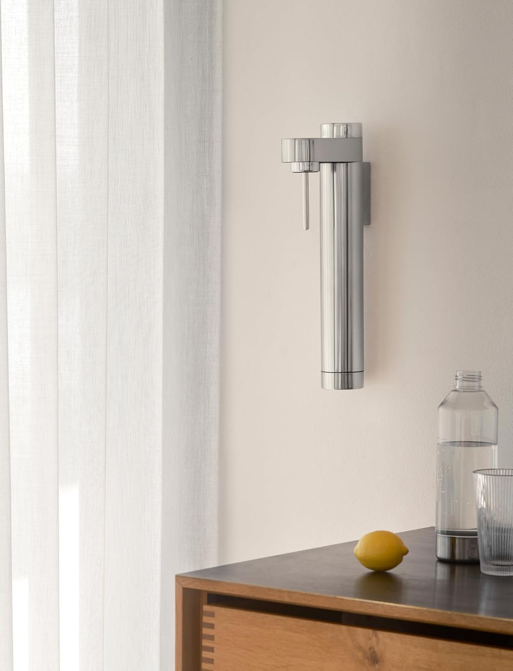 Stelton Brus Wassersprudler, Wandhalterung mit Flasche, Premium Carbonator für Wasser mit CO2 - Eins