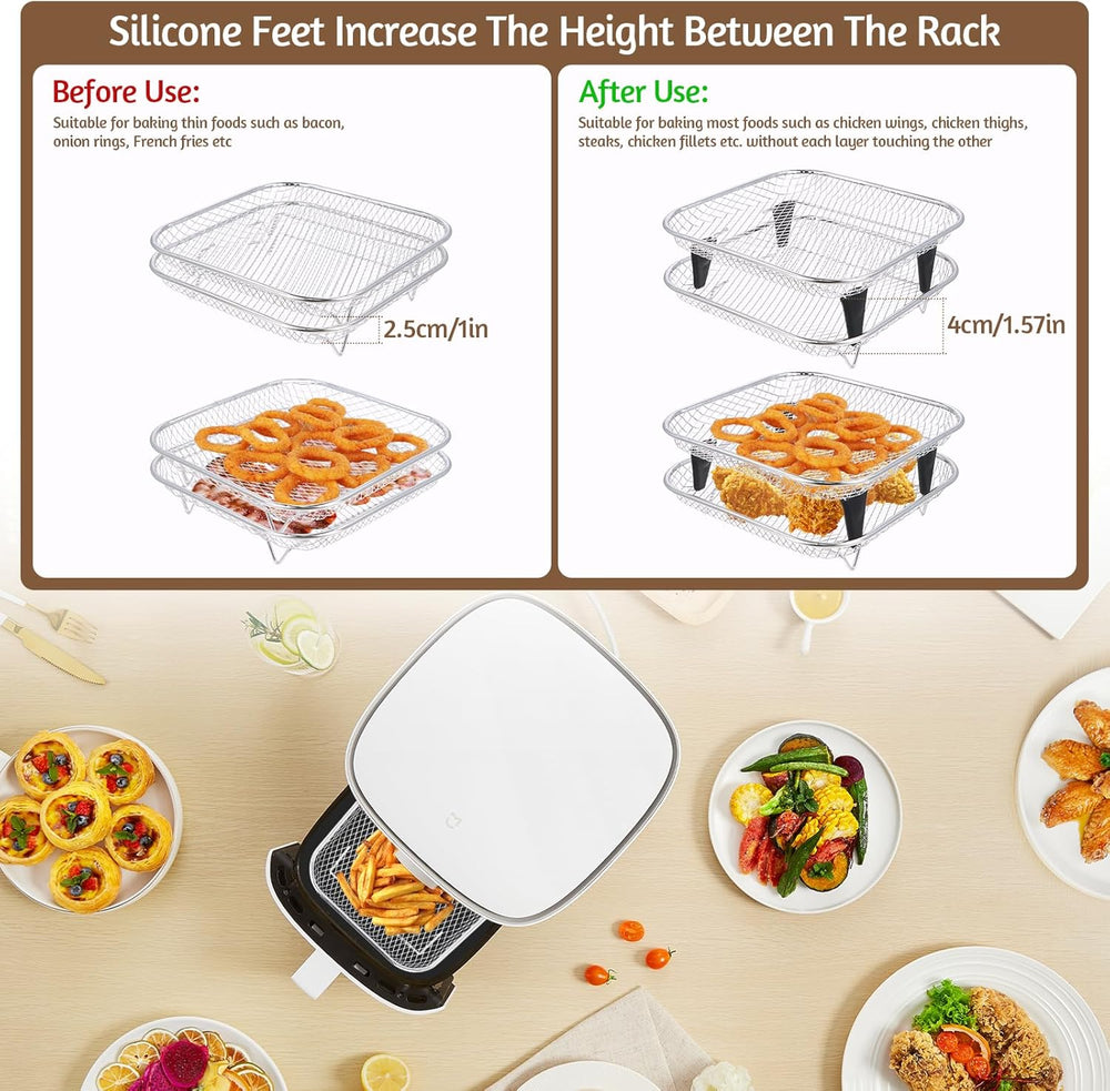 Luftfritteusen Regal aus 304 Edelstahl 3 lagig stapelbares, 20cm Gitter für Heissluftfritteuse Zubeh