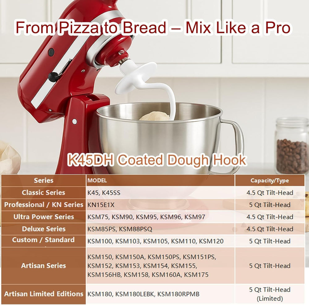 Knethaken Edelstahl für KitchenAid 4,5–5 Quart Mittelgrosse Küchenmaschinen mit kippbarem Motorkopf,