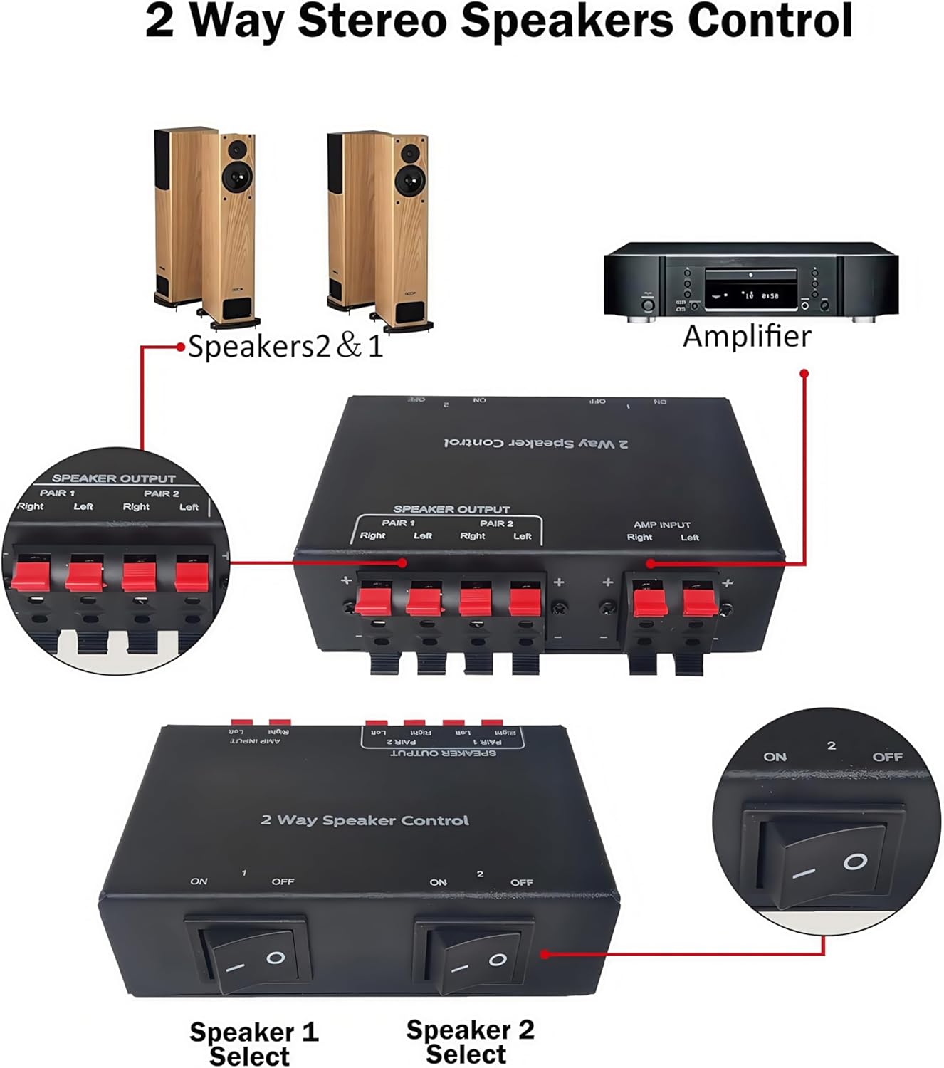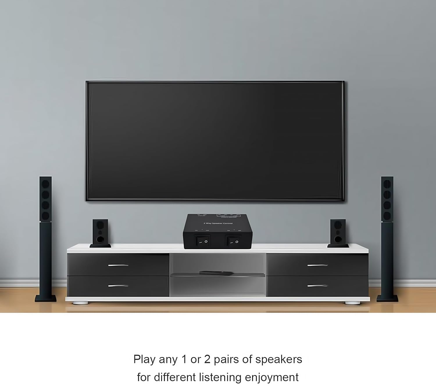 - [ Sanftes Umschalten ] Drücken Sie die Umschalttasten, um eines der Lautsprecherpaare oder beide gleichzeitig abzuspielen, ohne Geräusche beim Umschalten