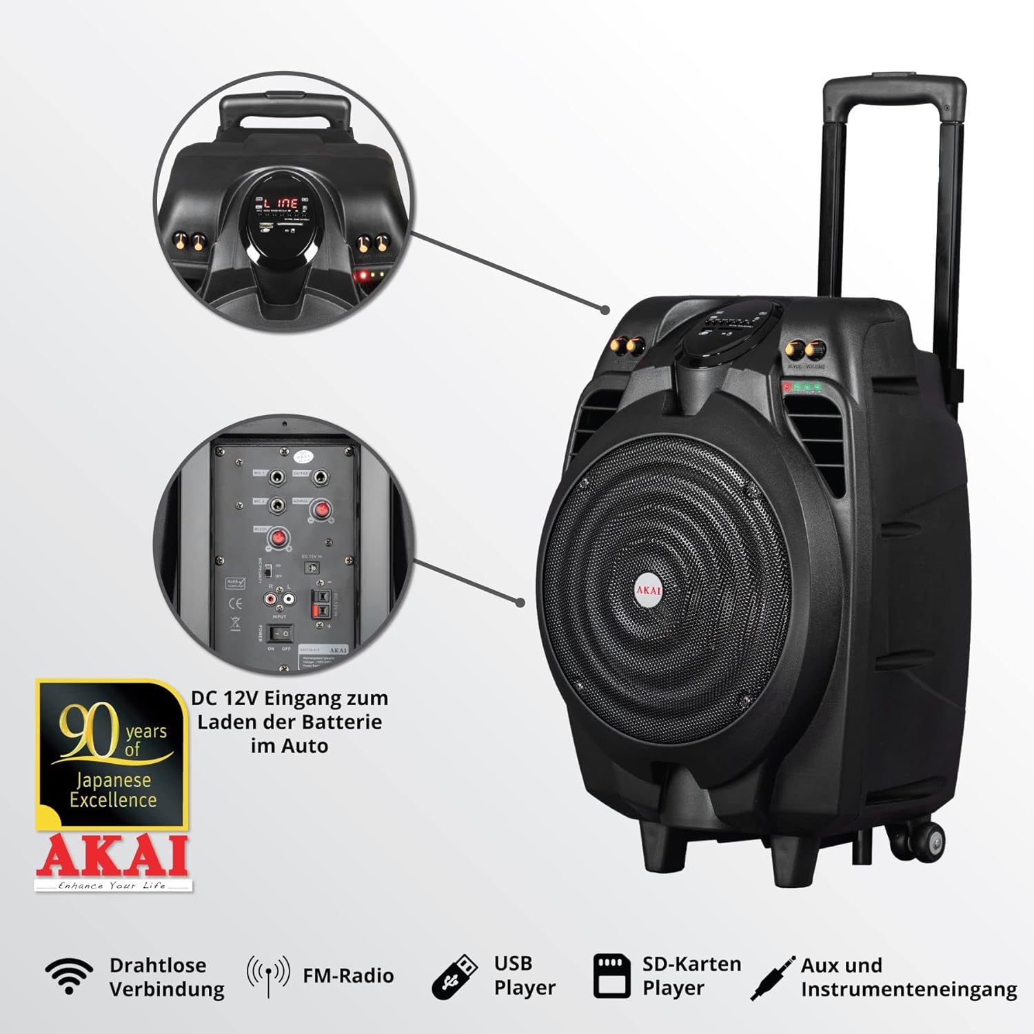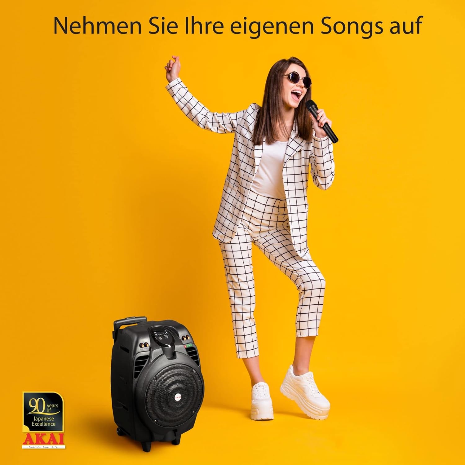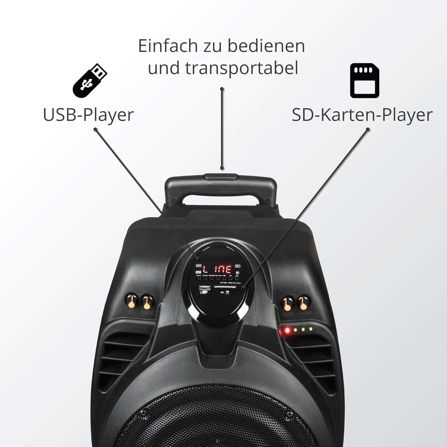 - Mobiles Entertainment Center mit leistungsstarkem Akku für bis zu 10 Stunden Musikwiedergabe, LCD-Display, Karaoke Funktion (zwei Mic.-In), Inkl. Mikrofon