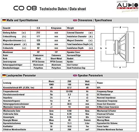 - Subwoofer 280 Watt, 4 Ohm, 200 mm Sub