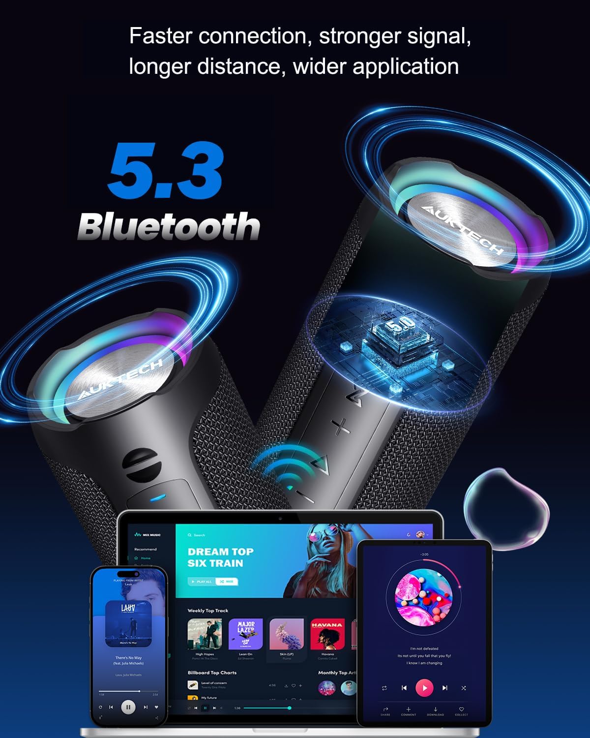 - 2. IPX7 Wasserdicht – Perfekt für Outdoor-Abenteuer! Die Lautsprecher sind wasserfest und eignen sich ideal für Poolpartys, Strandbesuche oder Regenschauer.
