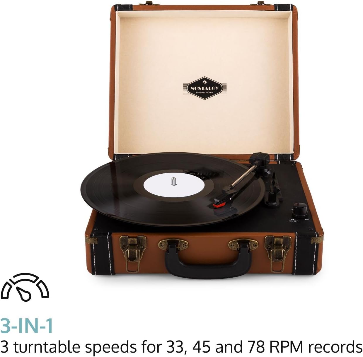 - SOFORT ABSPIELBEREIT: Der auna Jerry Lee Retro Vinyl-Plattenspieler verfügt über integrierte Stereolautsprecher, sodass Sie sofort nach dem Auspacken Ihre Schallplatten abspielen können, ohne weitere Lautsprecher oder Verstärker an diesen Vinyl