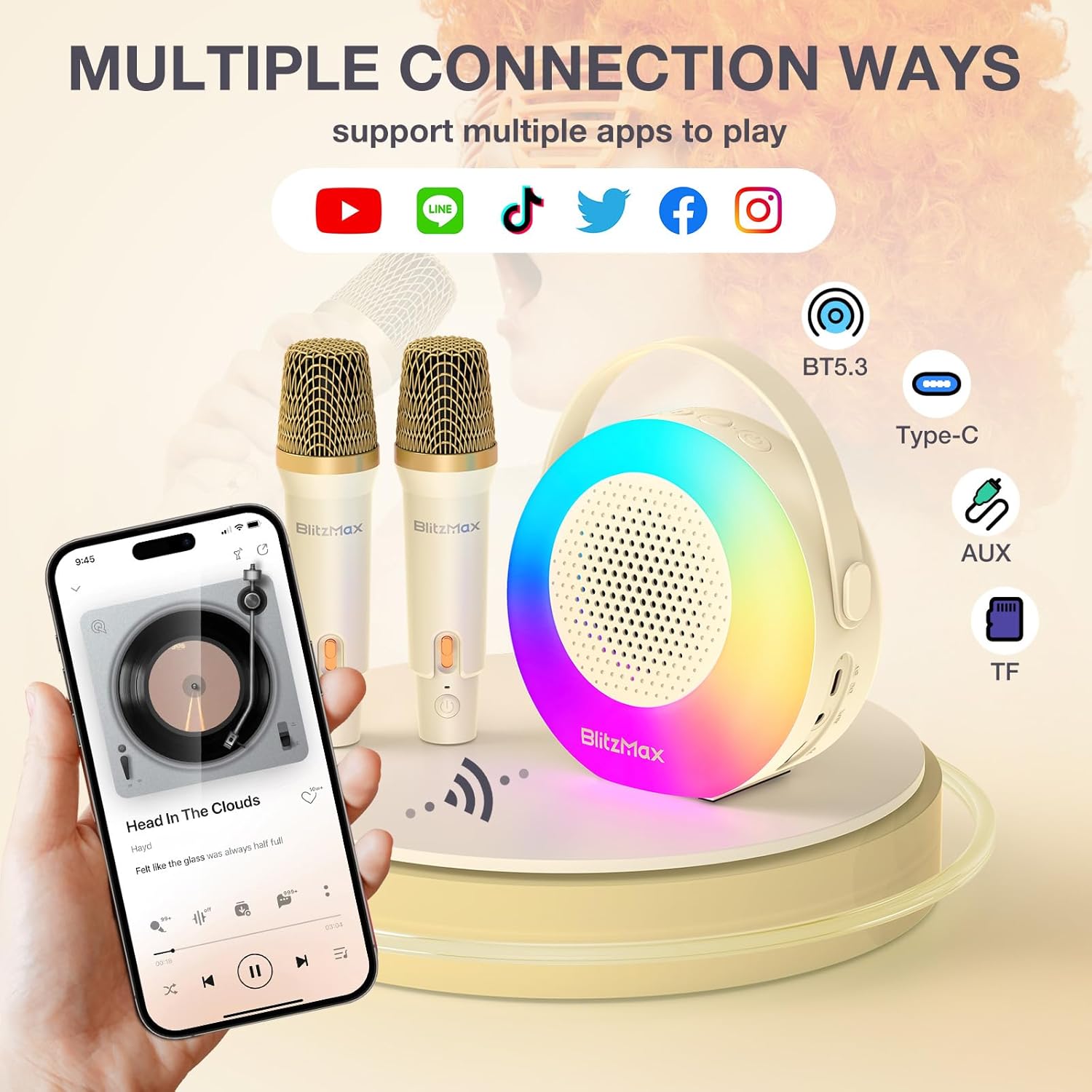 - 【Multifunktionale Verbindungsmethode】Dieser tragbare karaoke mikrofon kinder ist mit dem neuesten Bluetooth 5.3 Chip ausgestattet, der schnell koppeln und eine stabile Verbindung aufrechterhalten kann. Zusätzlich zu Bluetooth unterstützt das