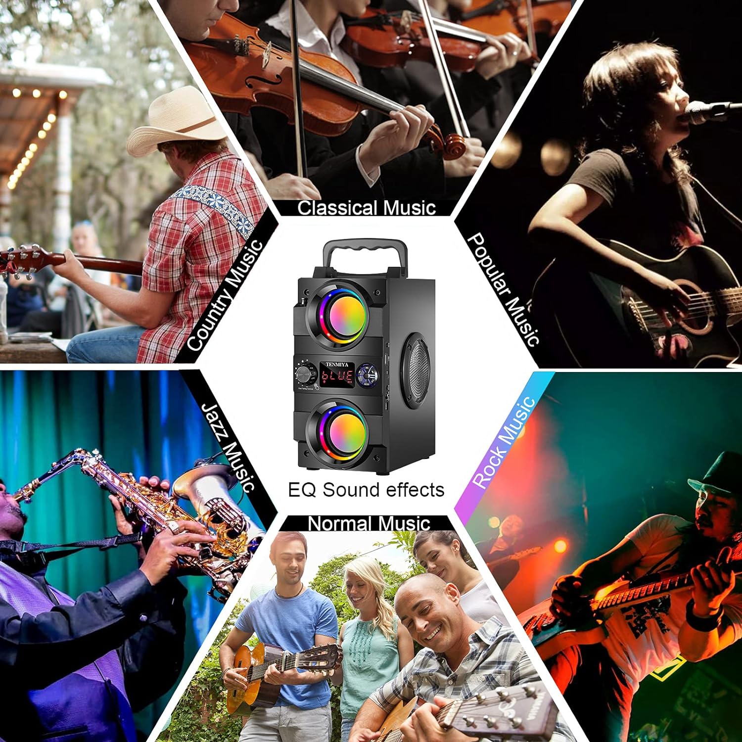 - ♫【Party-Lautsprecher und ausgezeichnete Spielzeit】 TENMIYA A23 Bluetooth-Lautsprecher mit Beleuchtung, geeignet für Partys im Freien / drinnen, Tänze, Familienzeit. Die bunten Lichter tanzen mit der Musik, die so schön ist. Party Speaker
